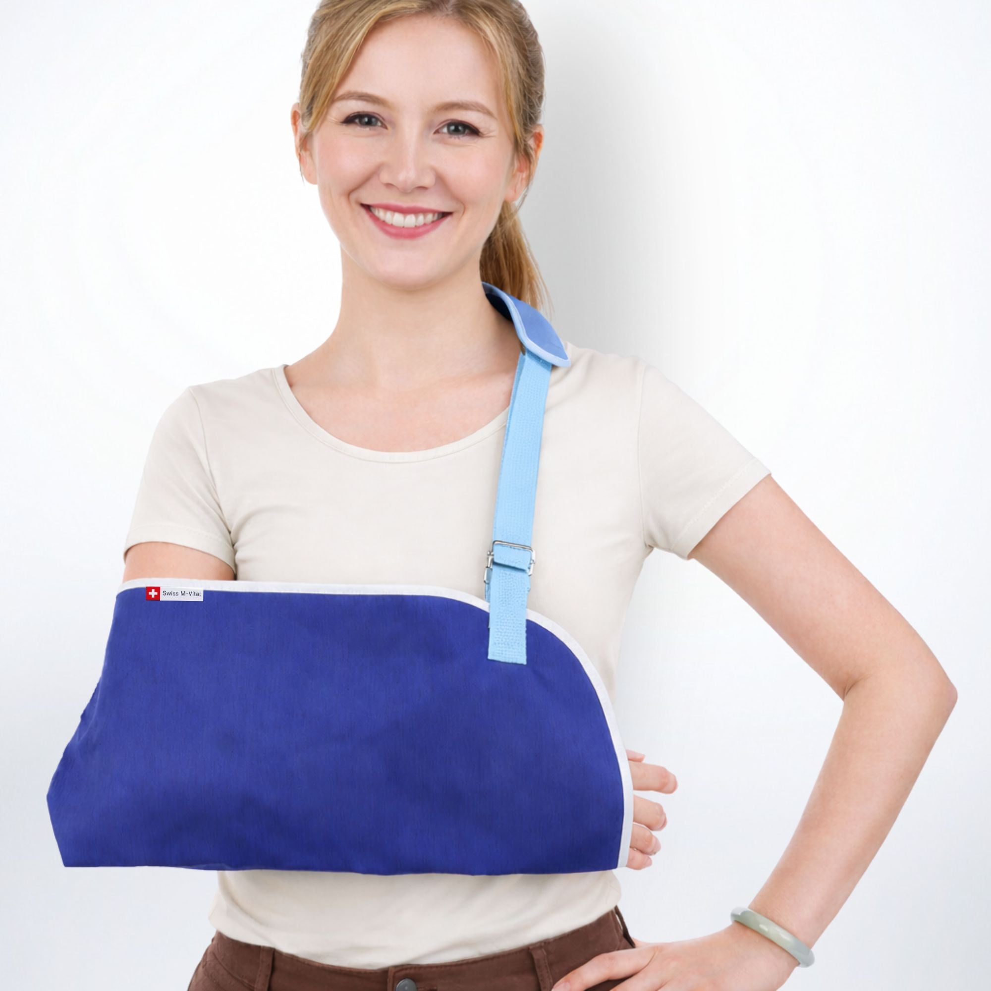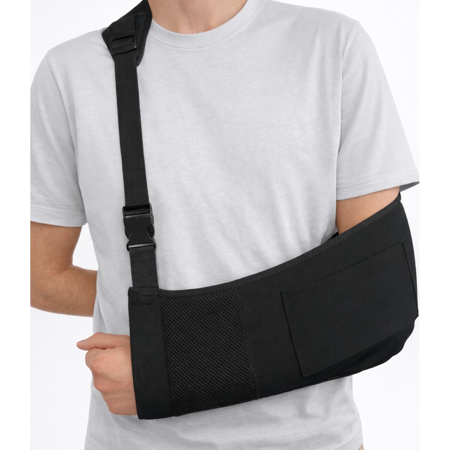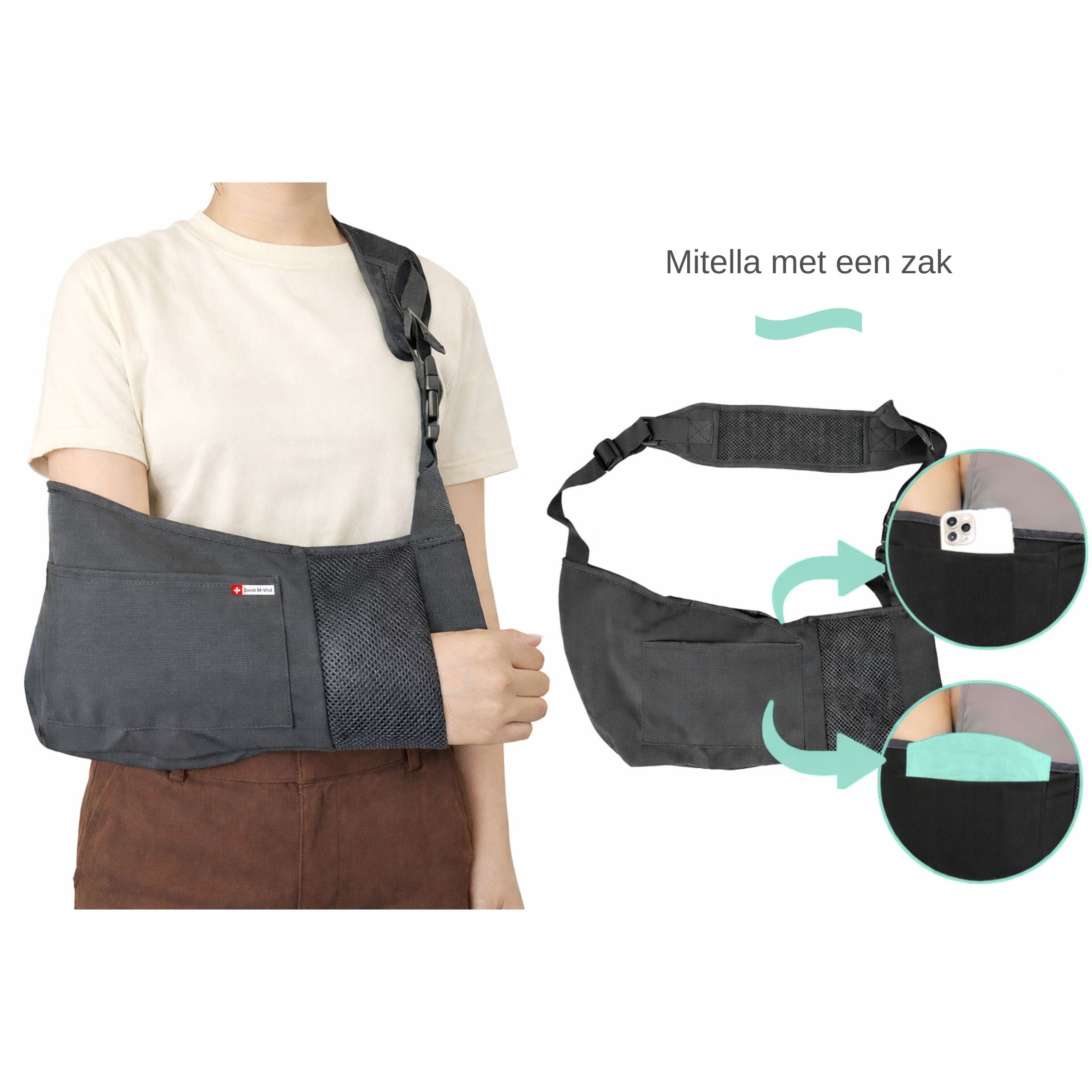 In de praktijk bedoelen veel mensen met “mitella” ook een sling/arm sling. Een sling is vaak een verstelbare bandconstructie (bijv. met klittenband) en een mitella meer een “doek”-oplossing, maar het doel is hetzelfde: je arm laten rusten en ondersteunen.